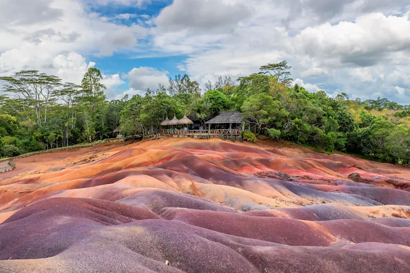 Im Südwesten von Mauritius erwartet Urlauber inmitten des üppigen Dschungels ein faszinierendes Naturschauspiel. Der als siebenfarbige Erde bekannte Park in Chamarel begeistert nämlich mit den herrlichsten Farben. Und so schimmert die imposanten Dünen aus Vulkangestein je nach Tageszeit in leuchtendem Rot, Braun, Gelb, Lila, Grün, Blau oder Violett.