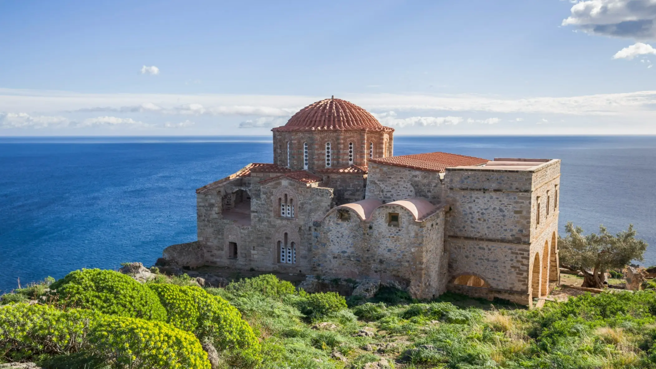 Sie erhob sich in einer äußerst günstigen Position, da sie vollständig von den Felsen geschützt und vom Meer aus völlig unsichtbar war. In Malvasia gibt es viel zu sehen: Es gibt Elkomenos Christos, eine schöne griechisch-orthodoxe Kirche und natürlich die alte Festungsstadt Kastros, von der aus man einen spektakulären Blick über die Dächer der Stadt und das Meer genießen kann.