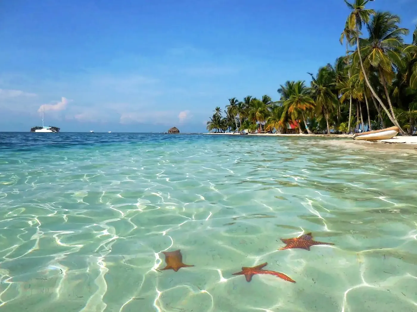 Die Playa de las Estrellas in Bocas del Toro begeistert mit einer spektakulären Kulisse aus schneeweißem Sandstrand, imposanten Palmen und kristallklarem Meer. Das eigentliche Highlight erwartet Sie jedoch unter der Wasseroberfläche.