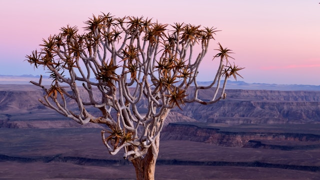 Der Fish River Canyon ist ein atemberaubendes Naturwunder, das oft als "Grand Canyon von Afrika" bezeichnet wird. Mit einer Länge von 160 km und einer Tiefe von bis zu 550 Metern beeindruckt der zweitgrößte Canyon der Welt mit leuchtenden Felsfarben und steilen Klippen, die vom Fish River geformt wurden. Er bietet aber nicht nur visuelle Freude, sondern auch eine reiche Tierwelt, darunter Klippspringer, Paviane und eine Vielzahl von Vogelarten. Neben geführten Wanderungen und Fahrten können Sie tagsüber auch auf eigene Faust entlang der Wanderwege die spektakuläre Schönheit des Canyons erleben.