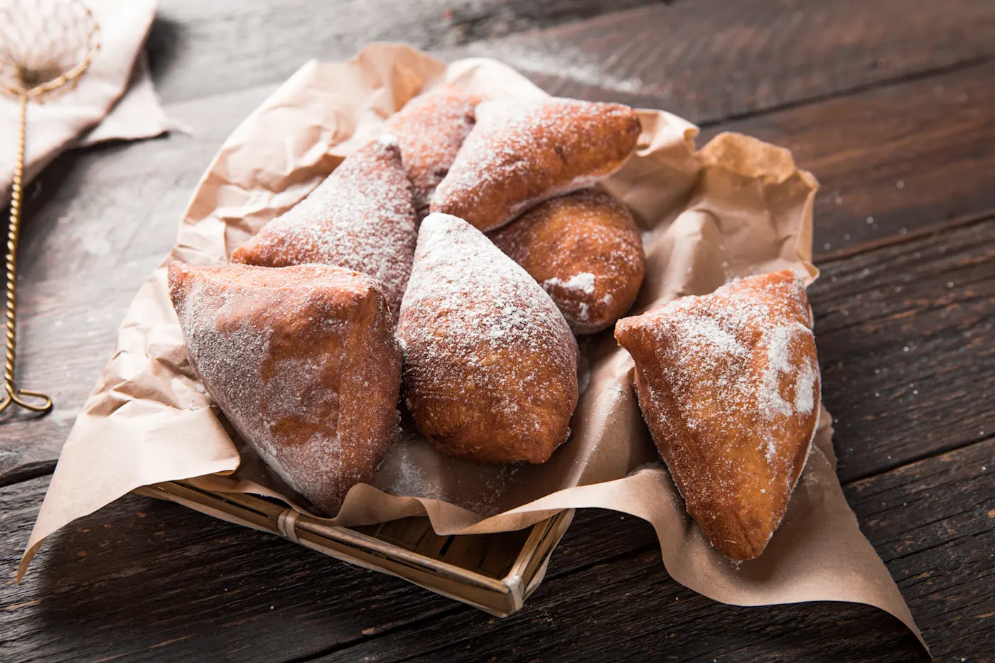 Mandazi ist ein einfaches und köstliches Gebäck: Ein süßes, frittiertes Straßenessen, das oft als Dessert oder Zwischenmahlzeit genossen wird. Die Grundzutaten sind Wasser, Hefe oder Backpulver, Zucker und Mehl. Nach dem Mischen wird der Teig dreieckig geformt, frittiert und mit Zimt oder Zucker bestreut.