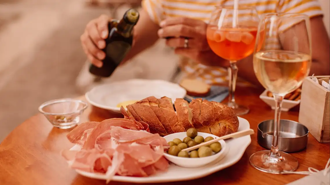 Das Mittagessen („ručak“) ist in Kroatien die Hauptmahlzeit und wird normalerweise zwischen 12 und 14 Uhr eingenommen. Währenddessen ist das Abendessen („večera“) oft leichter und wird zwischen 19 und 21 Uhr serviert. Zudem wird Brot oft zu den Mahlzeiten serviert, nicht als Beilage, sondern als integraler Bestandteil der Mahlzeit. Für Weinliebhaber lohnt es sich, traditionelle "Konobas" zu besuchen und lokale Weine zu probieren. Zum Anstoßen sieht man seinem Gegenüber in die Augen und sagt „Živjeli“ (Prost).