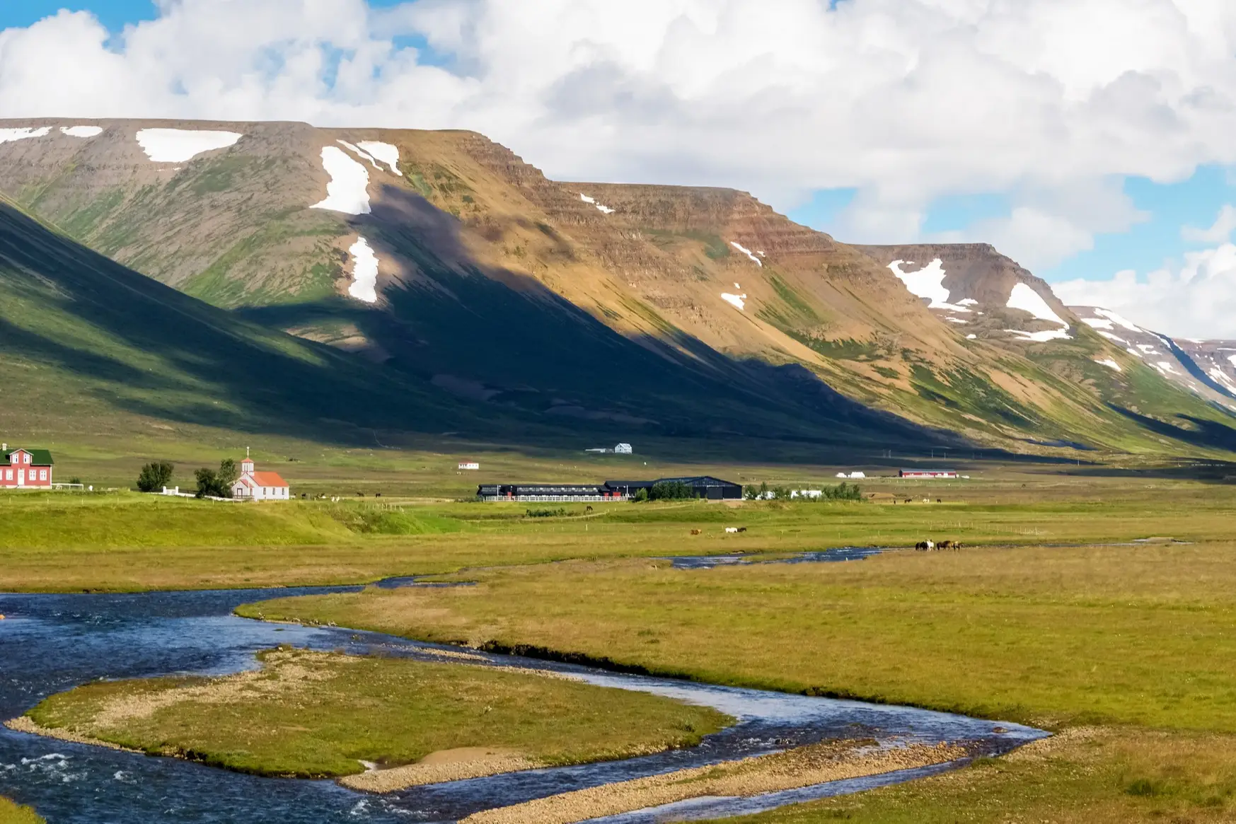 Der Skagafjörður gilt als Zentrum der isländischen Pferdezucht. Er überzeugt mit seinen Möglichkeiten für kurze, abwechslungsreiche Ausritte in malerischer Natur, an denen auch Anfänger einfach teilnehmen können. Ein Must See ist der wunderschöne Wasserfall Reykjafoss. Herrliche Panoramen bieten auch auch das Gletscherflussdelta Heraðsvötn sowie die beeindruckenden Skagafjörður-Berge.