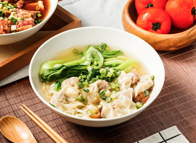 Wonton-Suppe ist ein chinesisches Gericht, das sich weltweit in vielen Restaurants etabliert hat. Sie besteht aus zarten Wontons, eine Art chinesischer Teigtaschen. Im Gegensatz zu Jiaozi haben sie weniger Füllung, eine deutlich dünnere Teighülle und ihre Form variiert je nach Falttechnik.