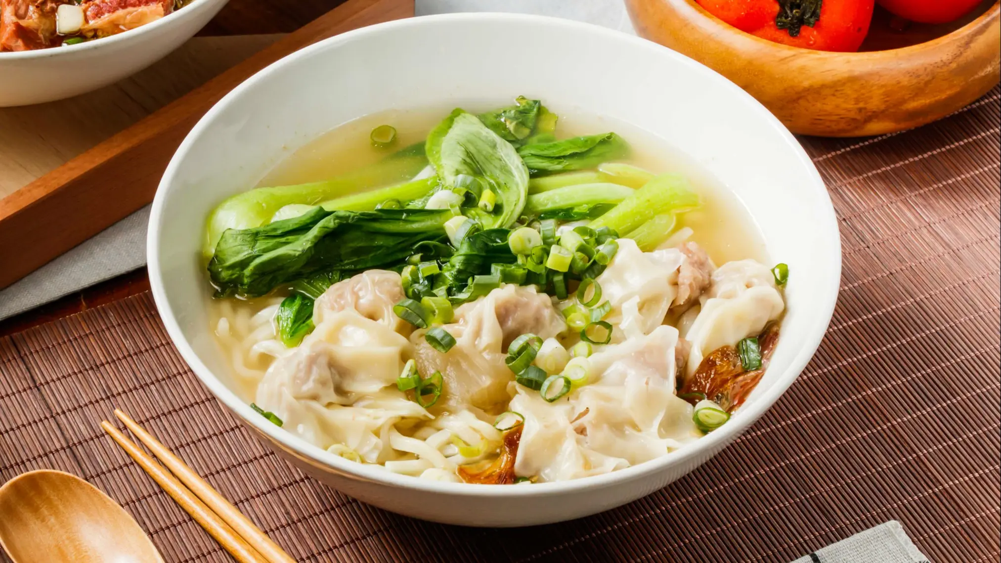 Die Füllung besteht meist aus gehacktem Schweinefleisch oder fein gewürfelten Garnelen. Die Wontons schwimmen in einer aromatischen, klaren Brühe. Frische Frühlingszwiebeln sorgen für eine feine Würze, und oft werden Chinakohl und dünne Eiernudeln der Brühe hinzugefügt. Besonders in der kalten Jahreszeit ist diese Suppe ein wärmender Genuss.