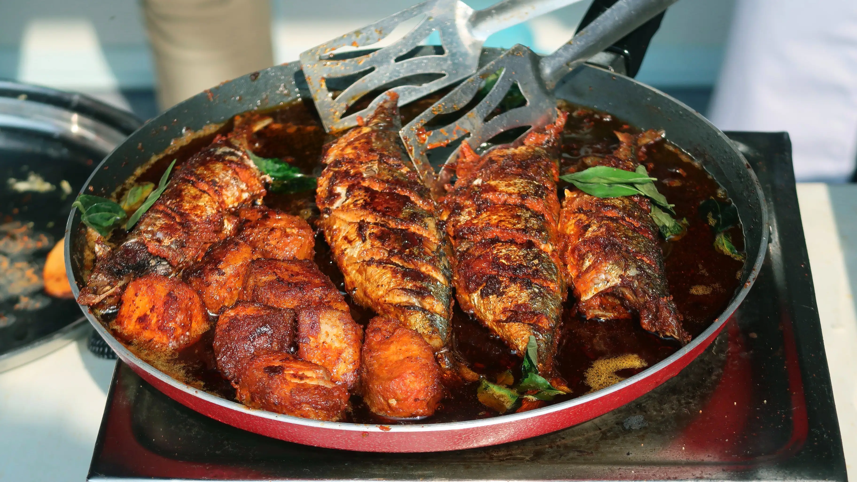 Das besondere Aroma erhält das Curry jedoch durch Tamarindenmark, das eine angenehm säuerliche Note verleiht. Außerdem wird geraspelte Kokosnuss, Sahne oder Milch hinzugefügt und die Soße, in der der Fisch langsam schmort, enthält neben Knoblauch, Chili, Kurkuma, Koriandersamen und Nelken oft Tomaten und Zwiebeln, während frische Curryblätter für zusätzliche Frische sorgen.