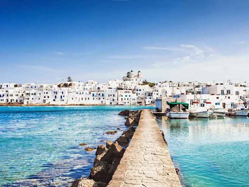 Naxos ist bekannt für seine langen, feinsandigen Strände, die zu den schönsten der Kykladen zählen. Agios Prokopios und Plaka sind besonders beliebt. Auch die Insel Paros bietet mit Stränden wie Kolymbithres und Golden Beach hervorragende Bade- und Wassersportmöglichkeiten.