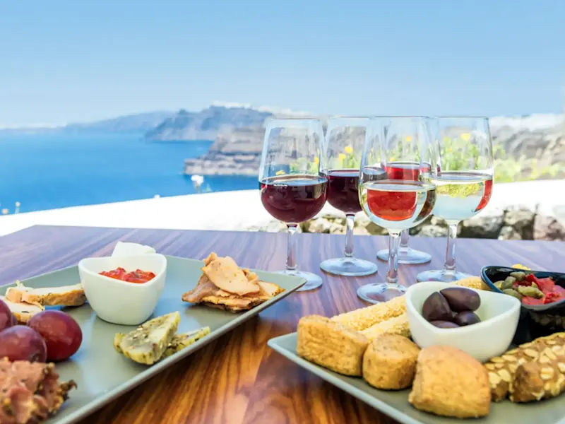 Probieren Sie bei einer geführten Verköstigung einige der besten griechischen Weißweine wie Assyrtiko und Nykteri bis hin zum hervorragenden Dessertwein Vinsanto. Runden Sie Ihre Tour mit einem fantastischen Mittagessen auf einem der herrlichen Weingüter der Region ab, während Sie die atemberaubende Aussicht auf die Ägäis genießen.