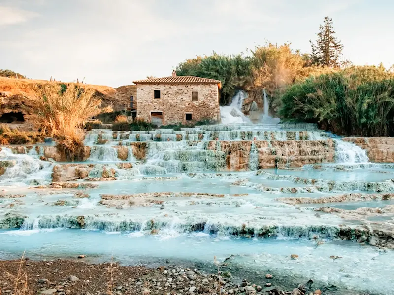 Knapp 100 Kilometer südlich von Florenz laden die natürlichen Thermalquellen von Saturnia dazu ein, die Seele baumeln zu lassen. Trotz des intensiven Schwefelgeruchs sollten Sie es sich daher nicht nehmen lassen, in den traumhaften Gorello-Wasserfällen zu baden. Wählen Sie dazu einfach ein passendes Plätzchen rund um die historische Wassermühle und entspannen Sie sich im 37 °C warmen Wasser. Baden können Sie hier übrigens nicht nur tagsüber, sondern auch nachts! Wer zudem nicht nur einen Tagesausflug nach Saturnia unternehmen möchte, findet vor Ort direkt neben den heißen Quellen ein erstklassiges Wellnesshotel!