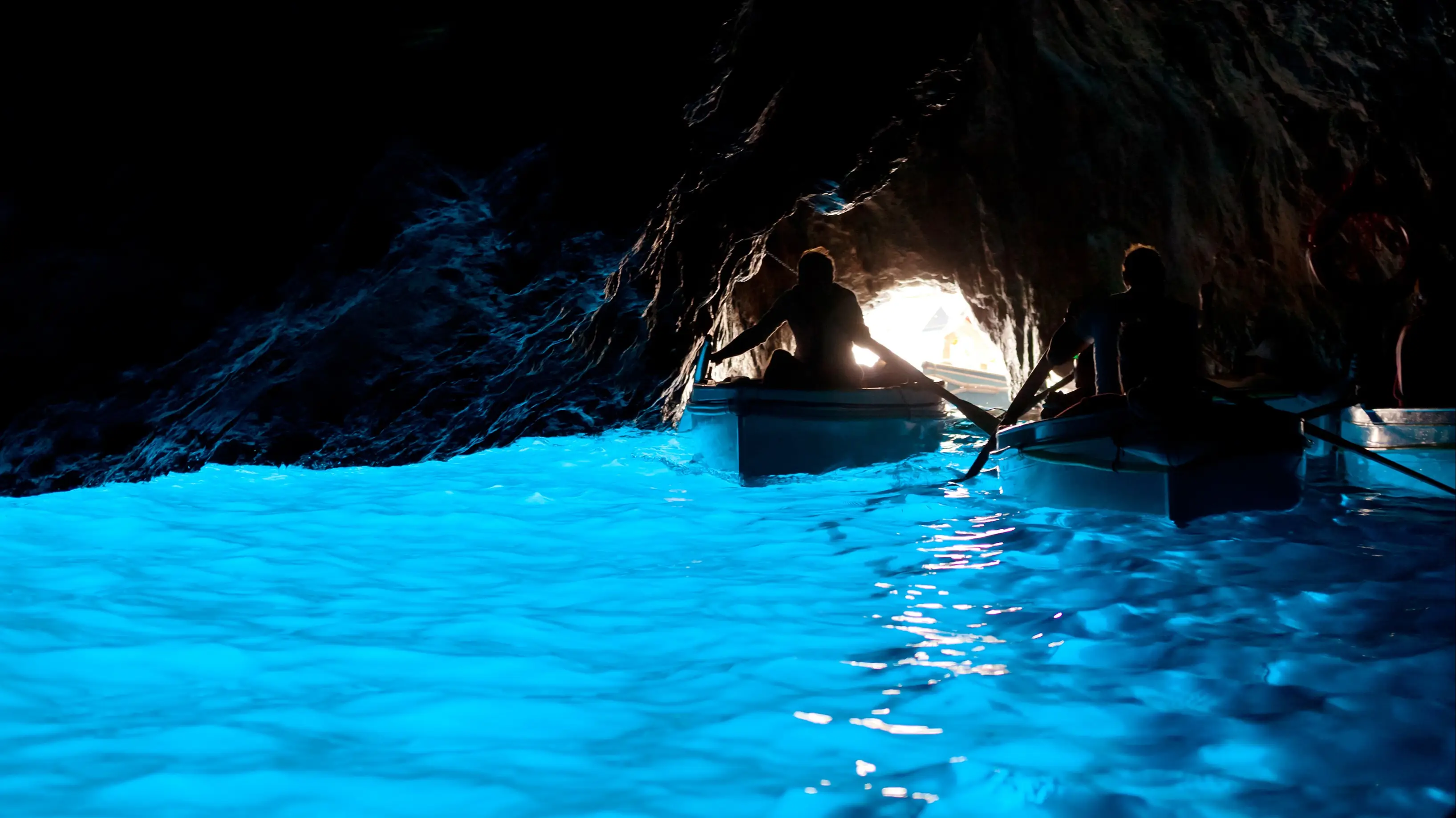 Eine der schönsten Orten Italiens ist die Grotta Azzurra in Capri. Die Höhle ist eine natürliche Meeresgrotte mit einem kleinen Eingang, die dank des Sonnenlichts, das durch kleine Öffnungen unter dem Höhleneingang einfällt, in einem blau-silbernen Farbton erstrahlt.
