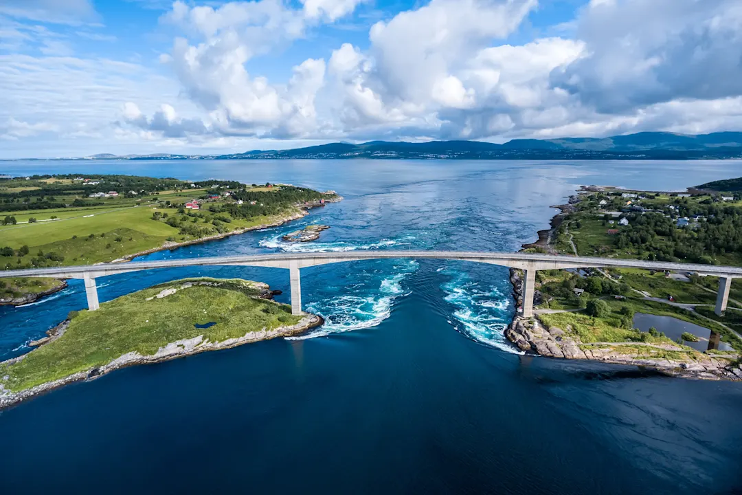 Eine der spektakulärsten Sehenswürdigkeiten von Bodø ist der eindrucksvolle Gezeitenstrom Saltstraumen nördlich des Stadtzentrums. Folgen Sie der malerischen Küstenstraße Kystriksveien mit dem Auto und genießen Sie den Blick auf die Wassermengen von der Brücke direkt über der Meerenge. Oder schließen Sie sich einer geführten Bootstour an, um das atemberaubende Naturschauspiel aus nächster Nähe zu erleben.