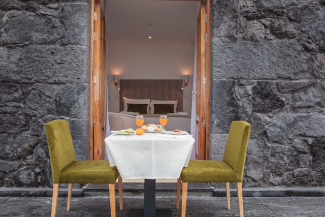 Das Hotel Terceira Mar liegt in der Fanal-Bucht mit Blick auf die Festung aus dem 16. Jahrhundert und ist von einem Garten mit Infinity-Salzwasserpool umgeben. Es ist nur wenige Schritte vom historischen Stadtzentrum von Angra do Heroísmo auf der Insel Terceira entfernt, die von der UNESCO zum Weltkulturerbe erklärt wurde. Alle Zimmer blicken auf das Meer und sind exquisit dekoriert und gut ausgestattet. Das Hotelrestaurant Monte Brasil serviert eine große Auswahl an Gerichten, und im hoteleigenen Pub werden großartige Sundowner-Cocktails gemixt. Zu den weiteren Annehmlichkeiten gehören kostenloses Wi-Fi im gesamten Hotel, ein Salzwasserpool, 2 Tennisplätze, ein Hallenbad und ein voll ausgestatteter Health Club für Gäste, die sich ein wenig verwöhnen lassen möchten. Ganz gleich, ob Sie die Insel Terceira aus geschäftlichen Gründen oder zum Vergnügen besuchen, das Terceira Mar Hotel bietet Ihnen die perfekte Mischung aus einem magischen Ort mit allen Annehmlichkeiten, die Sie brauchen, und hervorragendem Service.