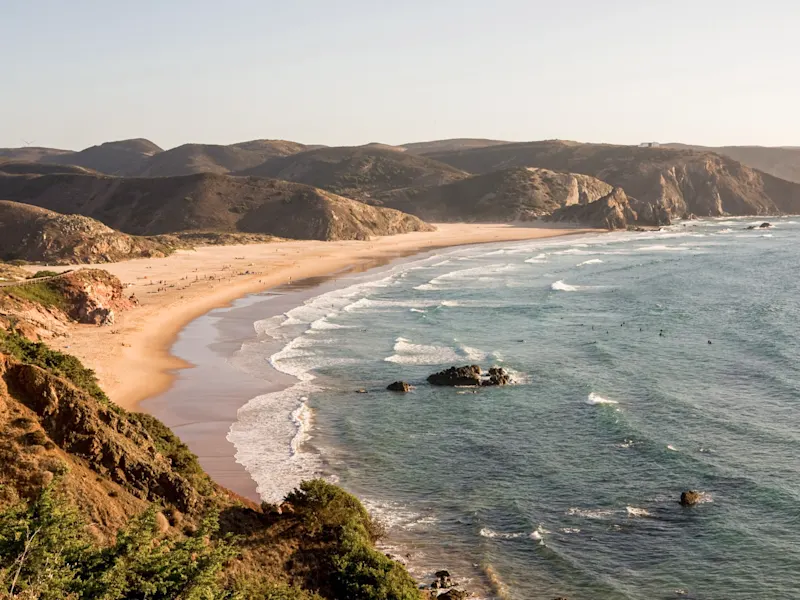 Reisende, die Entspannung und Wassersport kombinieren möchten, sind an der fabelhaften Praia do Amado in Bordeira genau richtig. Umgeben von satt grünen Hügeln und rötlich gefärbten Klippen erwartet Sie dieser Traumstrand mit einem weitläufigen Sandstrand, hohen Wellen und dem unvergesslichen Blick auf das Meer. Es sind ideale Bedingungen, um in einer der zahlreichen Surfschulen vor Ort das nötige Equipment zu mieten und das eigene Können beim Surfen oder Wellenreiten unter Beweis zu stellen. Alternativ können Sie die professionellen Surfer wunderbar vom Strand aus beobachten oder dieses Naturparadies bei einem langen Spaziergang entlang der Küste genießen.