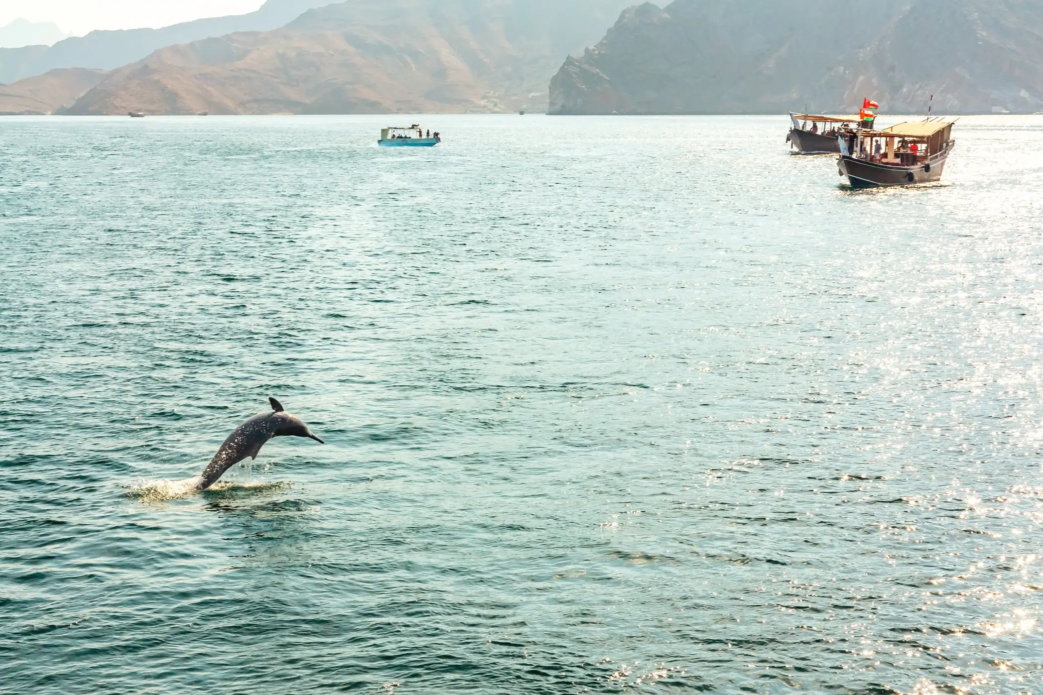 Fjorde im Nahen Osten? Ja, die gibt es im „Norwegen Arabiens“. Auf einer traditionellen Dau durchqueren Sie die spektakulärsten Fjorde von Musandum. Danach baden Sie im klaren Wasser vor Telegraph Island. Ein leckeres Mittagessen gibt es an Bord.