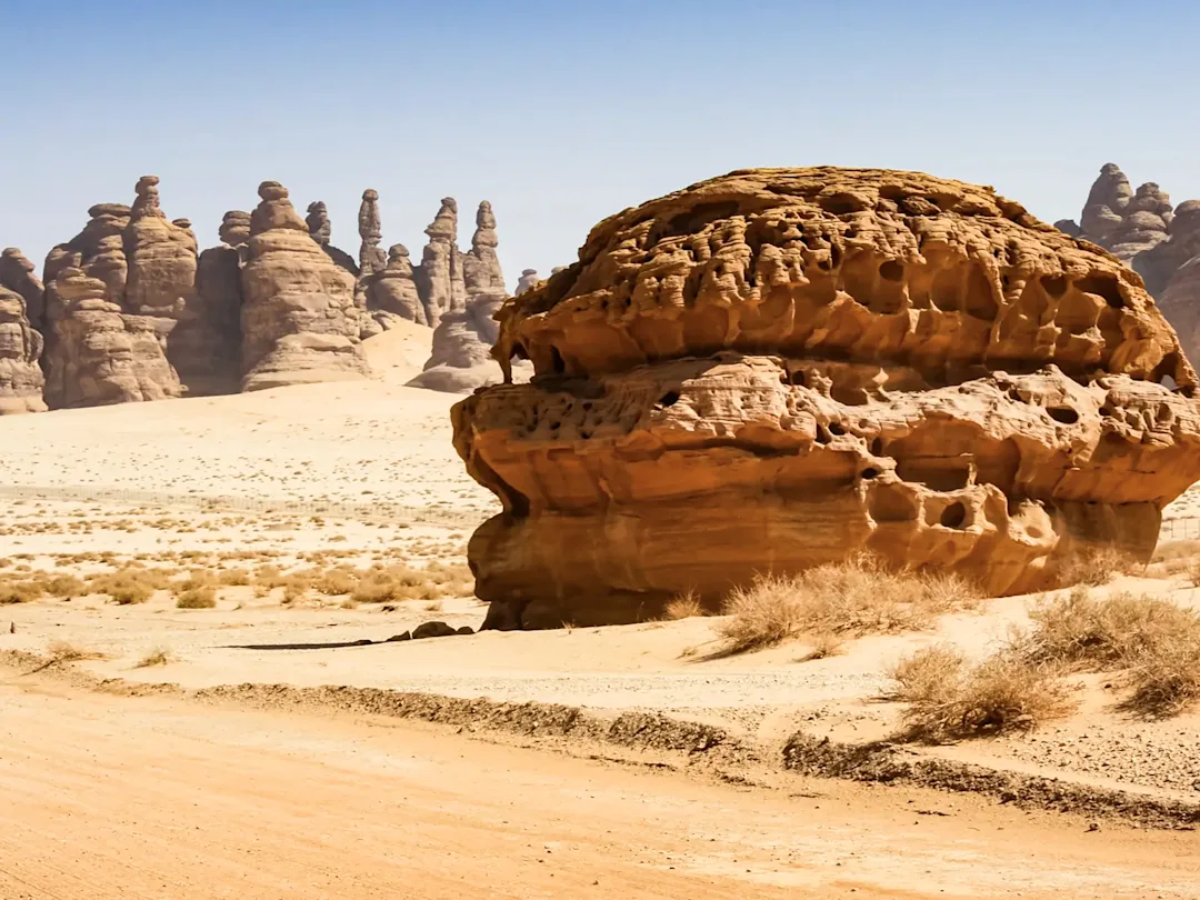 AlʿUla ist eine an antiken Schätzen reiche Stadt, die etwa 300 Kilometer nordöstlich von Medina und etwa 110 Kilometer südwestlich von Tayma im Nordwesten Saudi-Arabiens liegt. Zahlreiche Stätten aus vergangenen Jahrhunderten sind über das gesamte Gebiet verstreut. Die von der UNESCO zum Weltkulturerbe erklärte Stätte von Mada'in Saleh ist als zweitgrößte Hauptstadt der Nabatäer bekannt und beherbergt zahlreiche Gräber mit exquisiten, in den Stein gemeißelten Gravuren. Ein weiteres Muss ist das stimmungsvolle historische Dorf Al Deerah, ein ausgedehntes Netz von Ruinen aus Steinhäusern, die vor acht Jahrhunderten bewohnt waren. Außerdem gibt es zahlreiche Museen, die einen Einblick in das reiche Erbe der Region bieten. Geologen werden sich über den Elefantenfelsen freuen, eine riesige elefantenförmige Formation, die im Licht der untergehenden Wüstensonne erstaunliche Formen und Farben hervorbringt.