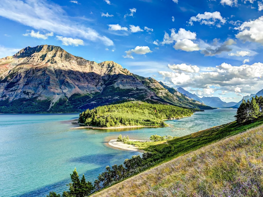 Der Waterton Lakes National Park liegt in der südwestlichen Ecke der kanadischen Provinz Alberta und ist eine beeindruckende Ausdehnung unberührter Wildnis. Der Park wurde 1995 zum UNESCO-Weltkulturerbe erklärt und bildet zusammen mit dem benachbarten Glacier National Park in Montana den Waterton-Glacier International Peace Park. Mit etwas Glück haben Besucher die Möglichkeit eine Vielzahl von Wildtieren in freier Wildbahn zu erleben. Darunter unter anderem Bären, Wölfe, Pumas, Hirsche, Kojoten, Rotluchse, Biber und Weißkopfseeadler. Zu den Sehenswürdigkeiten der Region gehören die kristallklaren Waterton Lakes. der herrliche Red Rock Canyon; und Buffalo Paddock, ein eingezäuntes Gebiet von Grasland, das die Gelegenheit bietet, Büffel in ihrer natürlichen Umgebung zu erleben.