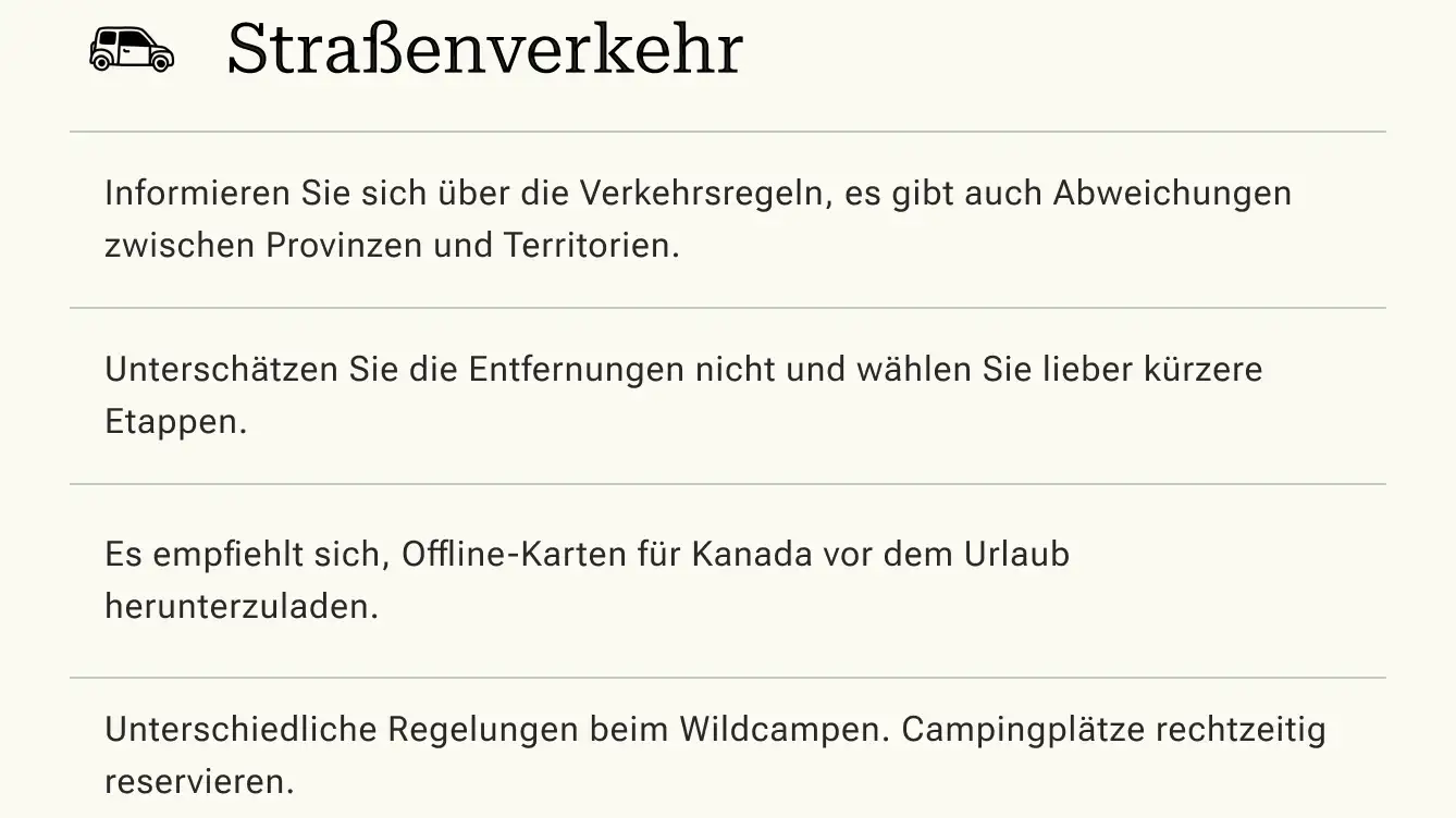 Machen Sie sich mit den örtlichen Straßenverkehrsregelungen bekannt. Es gibt zahlreiche Abweichungen zu den deutschen Regelungen.