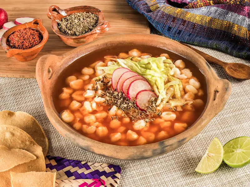 Die traditionelle Suppe Pozole aus langsam gekochtem Schweinefleisch ist eines der beliebtesten Gerichte in Mexiko. Der andere Hauptbestandteil von Pozole ist Hominy, also Mais, der in Wasser mit Kalksteinen oder Holzasche in einem Prozess namens Nixtamalisierung eingeweicht wird, wodurch die Körner aufquellen und die Beschichtung sich auflöst.