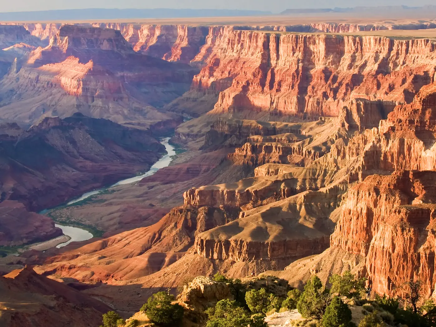 Mit seinen zerklüfteten, rot leuchtenden Felslandschaften ist der Grand-Canyon-Nationalpark der wohl berühmteste Nationalpark der USA und außerdem Symbol des Wilden Westens. Er umfasst eine Fläche von fast 5.000 Quadratmetern. Dazu zählt auch die spektakuläre bis zu 1,6 Kilometer tiefe und mehr als 400 Kilometer lange Schlucht, die der Colorado-River in Millionen von Jahren in das Gestein gegraben hat.