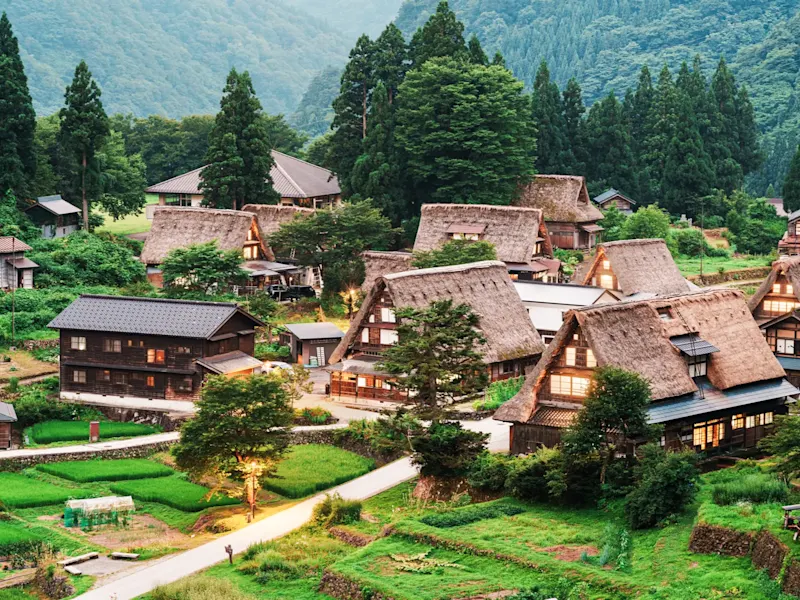 Entdecken Sie Japans ländlichen Zauber bei einem Ausflug nach Shirakawago. Nicht ohne Grund zählt das kleine Dorf inmitten der Japanischen Alpen heute zum UNESCO-Weltkulturerbe. Schlendern Sie durch die verwinkelten Gassen und staunen Sie über die wunderschönen Gassho-Zukuri-Bauten mitsamt ihrer traditionellen Strohdächer.