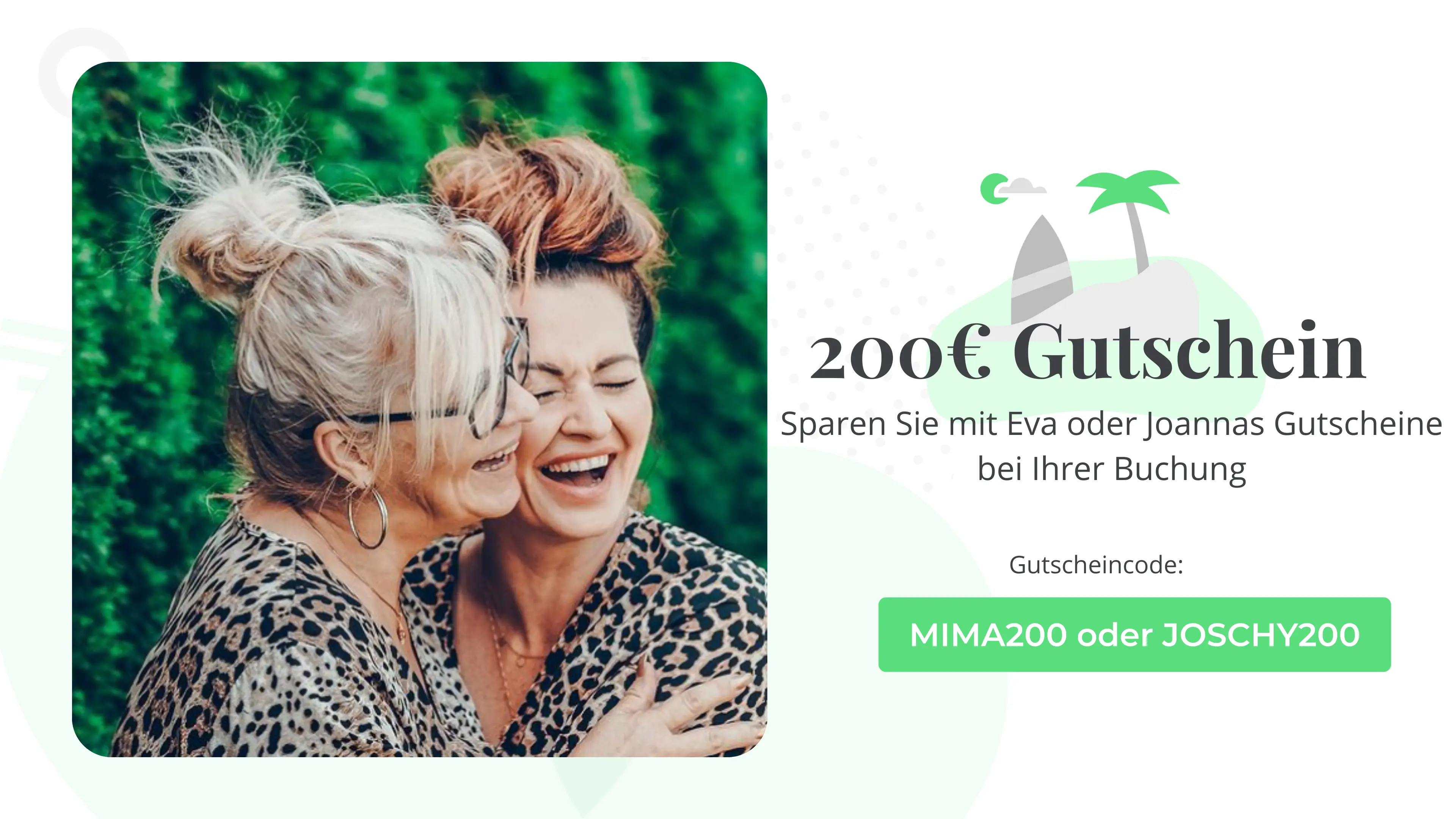 Buchen Sie jetzt sorgenfrei Ihr nächstes Reiseziel mit Joannas Gutschein: JOSCHY200 oder Evas Gutschein: MIMA200